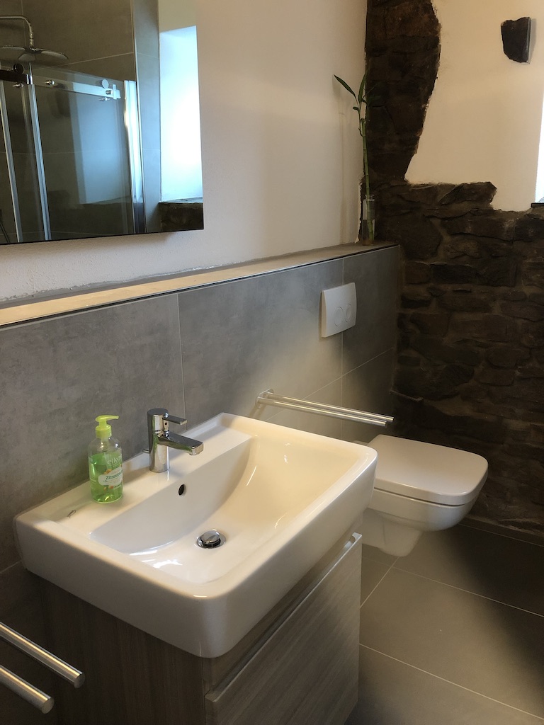 Ursprünglich war diese Wohnung eine Scheune, welche vermutlich 1903 erbaut wurde und über die Jahre viele Zwecke erfüllte, bis wir die Ruine 2010 kauften und ab 2016 zu dieser wunderschönen, knapp 75qm großen Wohnung umbauten. Dabei war uns wichtig, möglichst viel der alten Substanz zu erhalten und mit einem modernen Stil zu kombinieren.